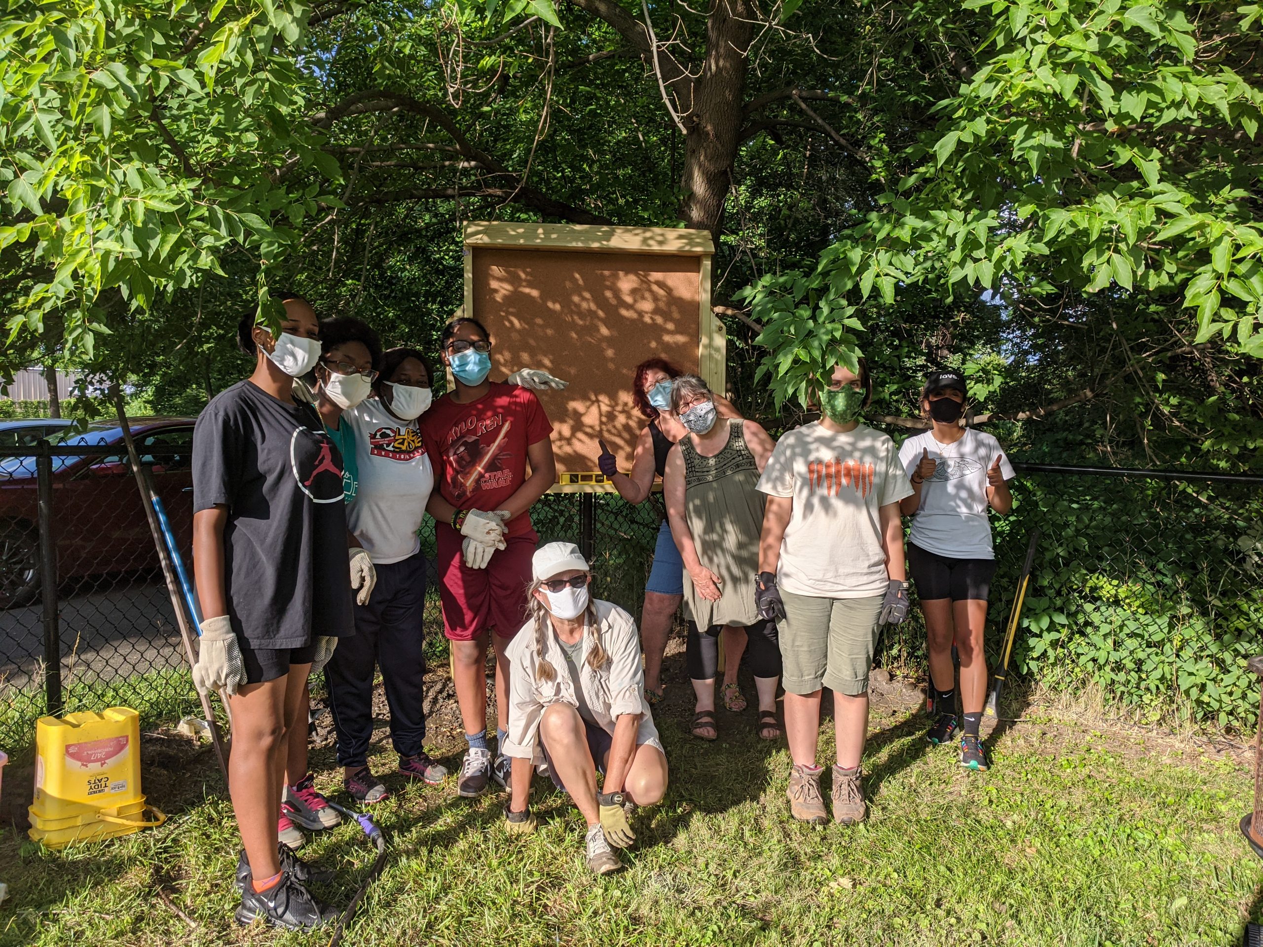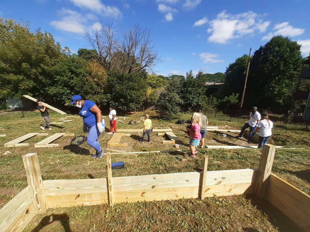 “Built in record time” in the fall of 2022 during the United Way ‘Day of Caring’. This garden is a collaboration with the American Civil Association to allow access to safe gardening space for both ACA clients and residents in the neighborhood. On going work will be done to continue to beautify the entirety of the garden space.