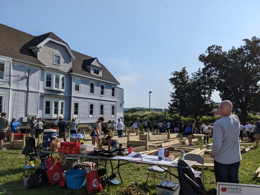 This is Binghamton’s 11th community garden, and was built over the course of 6 hours by neighbors and volunteers. The land for the Park St. garden was home to a supporter of VINES who lost their home on the site to a fire. It was her dream to repurpose the land into a community garden and we are so happy that we were able to work with her to make this happen. Priority for garden plot rentals will be given to residents of these homes and the surrounding blocks.