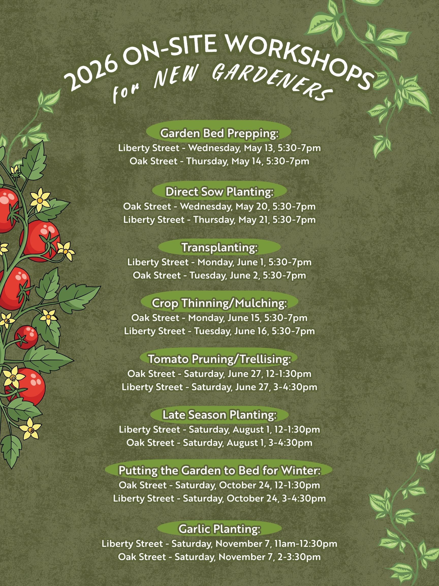 Garden Rental Fee: $30 per plot (10×4 ft raised bed or 20×20 ft in ground plot)